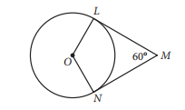 In the figure above, point O is the center of the circle, line segments LM and MN are tangent to the circle at points L and N, respectively, and the