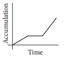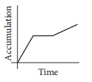 Snow fell and then stopped for a time. When the snow began to fall again, it fell at a faster rate than it had initially. Assuming that none of the snow melted during the time indicated, which of the following graphs could model the total accumulation of snow versus time?