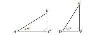 Triangles ABC and DEF are shown above. Which of the following is equal to the ratio