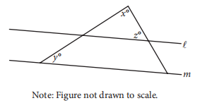 In the figure above, lines A and m are parallel, y = 20, and z = 60. What is the value of x?