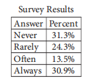 The table above shows the results of a survey in which tablet users were asked how often they would watch video advertisements in order to access streaming content for free. Based on the table, which of the following is closest to the probability that a tablet user answered “Always,” given that the tablet user did not answer “Never”?