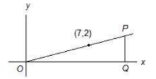 Line k (not shown) passes through O and intersects between P and Q. What is one possible value of the slope of line k?