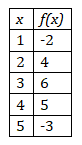 The table shows some values of the function f. If g(x) = x + 1, what is the value of f(g(3))?