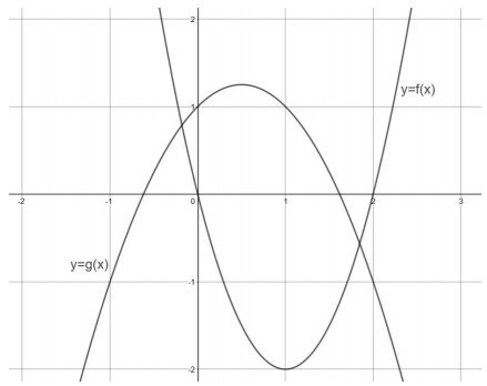 Graphs of the functions f and g are shown in the xy-plane above. For which of the following values of x does f(x) + g(x) = 1?