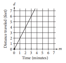 The graph above shows the distance traveled d, in feet, by a product on a conveyor belt m minutes after the product is placed on the belt. Which of the following equations correctly relates d and m?