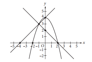 A system of three equations is graphed in the xy-plane above. How many solutions does the system have?