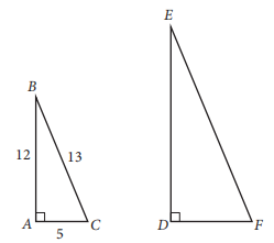 In the figure above, triangle ABC is similar to triangle DEF. What is the value of cos(E)?