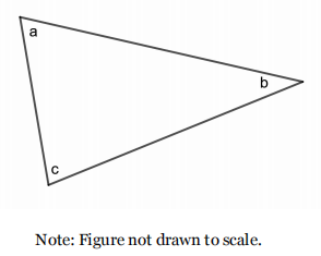 In the triangle above, the measure of b is 33°. What is the sum of the measures of angle a and angle c, in degrees?