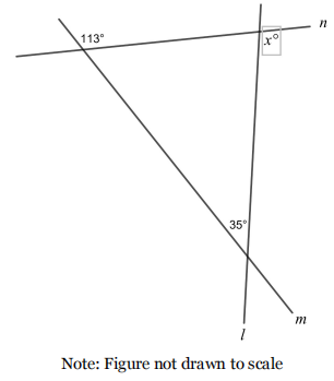 According to the figure, we know the supplementary angle of 113°in the upper-left corner is 180°- 113°= 67°. Therefore, the supplementary angle of x°, also the interior angle of the triangle, is 180°Click "Show Answer" to reveal the answer and analysis