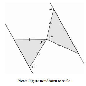 According to the given information, the supplementary angle of z°is 180 - 50 = 30°. The triangle on the right is Isosceles, so the angle of the bottom-right corner is 30°as well.