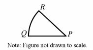 In the figure above, P is the center of a circle, and Q and R lie on the circle. If the length of arc QR is π and PQ = 6, what is the measure of ∠RPQ in radians?