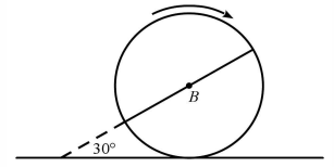 In the figure above, a wheel with center B and a radius of 12 cm is resting on a flat surface. A diameter is painted on the wheel as shown. Jasmine calculates that when the wheel begins to rotate in a clockwise direction and rolls along the surface without slipping, B will travel bπ cm before the painted diameter is perpendicular to the surface for the first time. What is the value of b?