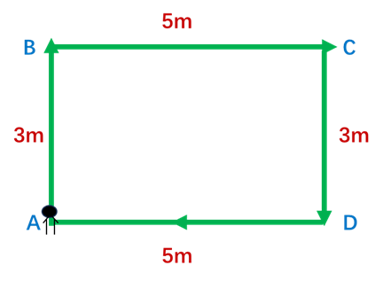 {TS}Sara walks from Point A to Point B. Which is true?