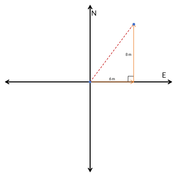 A student moves 6 meters east, then 8 meters north on the playground, taking a total of 10 seconds. What is the magnitude of the student's average velocity during these 10 seconds?