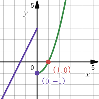 The graph has a jump discontinuity at x=0.