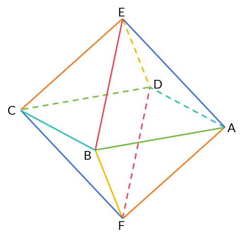 Consider the structure of a regular octahedron. We can think of it as composed of two square pyramids with their bases joined together.